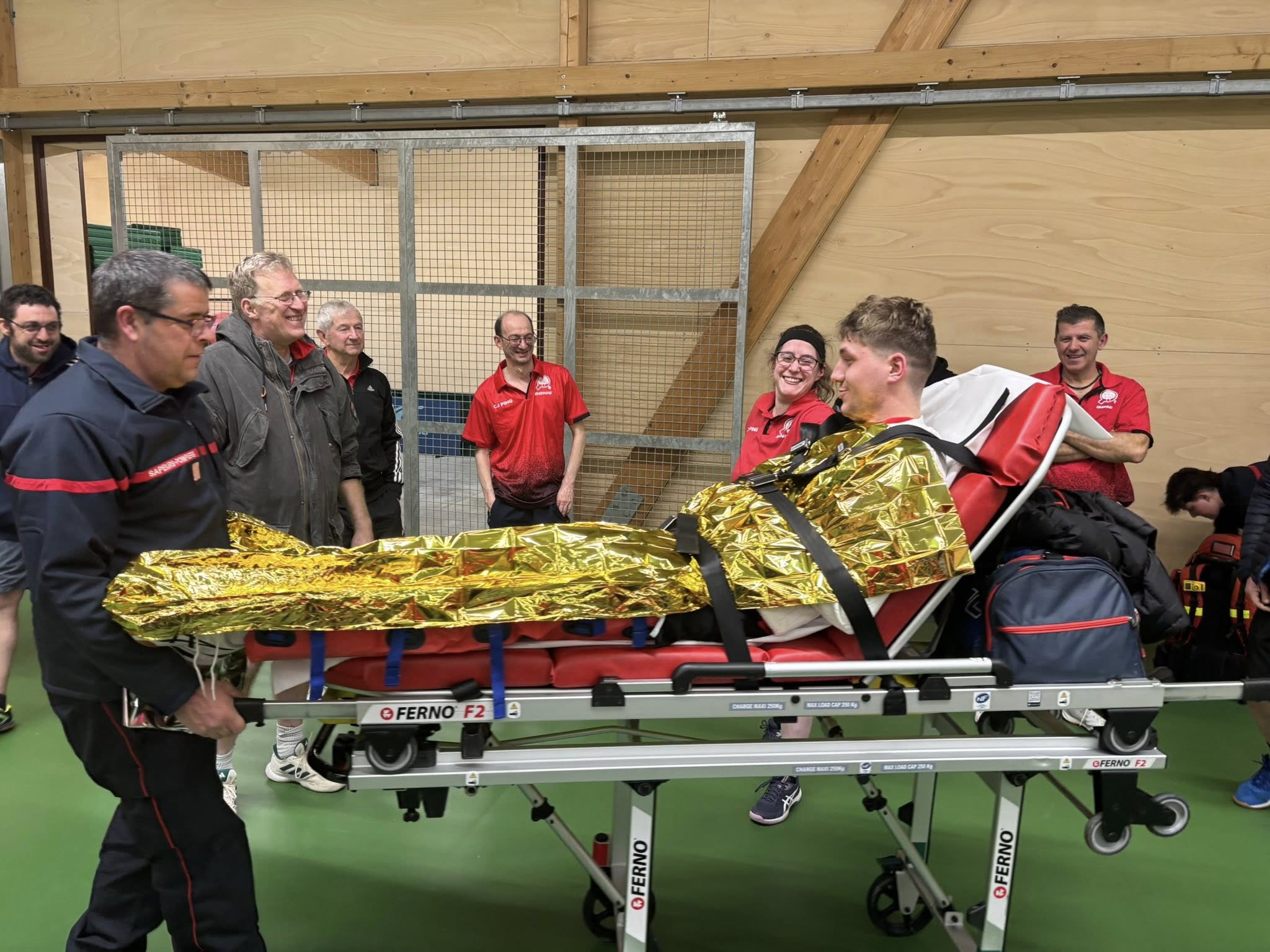 Moment plus sérieux pendant la soirée avec la blessure de notre joueur de régional Nathan Vaubert. Pris en charge rapidement, tout le club est derrière toi et te souhaite un bon rétablissement.